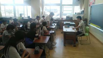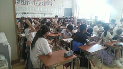2時間目に6年生教室を覗くと、何やら話し合っているみたいでした。真剣に考えて答えようとしていました。