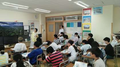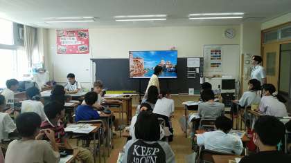 6年生の時間目は、外国語科の学習でした。世界の有名な場所の映像を見ながら、英語の聞き取りをしていました。水の都ベニスとか…。
