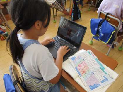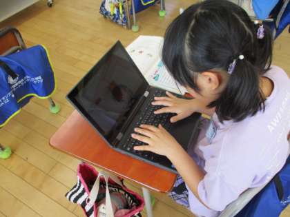 9月からローマ字の読み書きの学習を進めています。今日は、コンピュータでの入力に挑戦しました。書くときとは違う文字を使い、正しい指の位置で入力できるように、真剣に取り組んでいました。