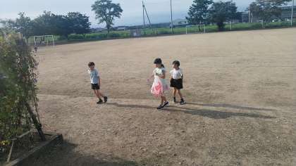 グラウンドに出て、バケツや袋を持って石拾いや草むしりをしている児童もいました。