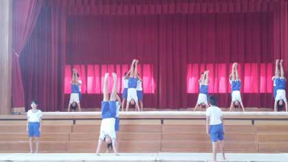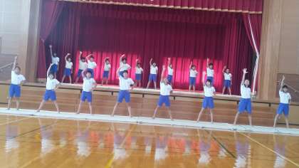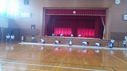5年生は、3時間目に体育館で表現発表会の練習をしていました。音楽に合わせてリズムよく演技する姿が格好よかったです。
