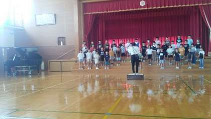 3・4年生は、4時間目に体育館で表現発表会の練習をしていました。「やあ!」と「ありがとうの花」の2曲練習していました。とってもすてきな歌声が響いていました。
