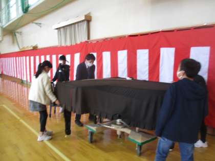 最高学年、初めての仕事として、入学式の準備をしました。いすを並べたり、ピアノの準備をしたりしました。短い時間でしたが、てきぱきと働く姿がすてきでした。最高学年としてのみんなのやる気が感じられました。