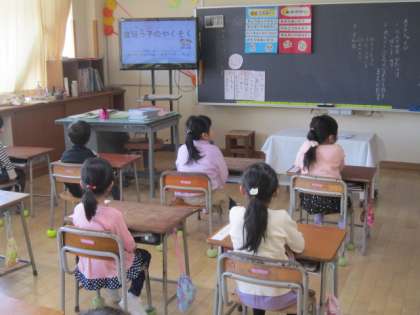 朝活動の時間に、生徒指導主事から「倉垣っ子のやくそく」についてのお話がありました。校内放送を活用し、どの学年の子供たちも真剣にテレビを見て聞いています。楽しく安全に学校生活を送るためのやくそくをみんなで守りましょう。