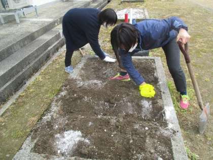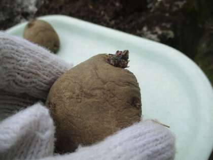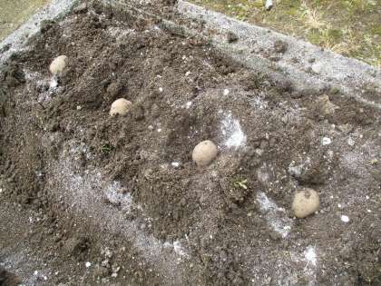 学校の花壇に、理科の学習で使うジャガイモを植えました。