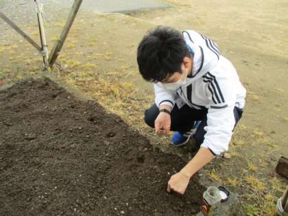先生は今日、みなさんの代表として、○○○のたねを植えました。
