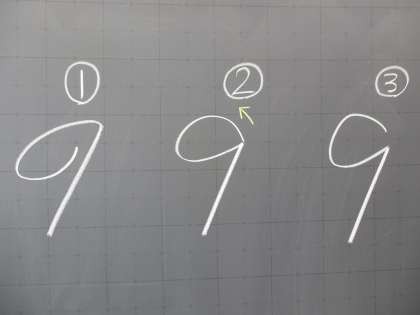 つぎは、さんすうのもんだいです。8や9のれんしゅうをしていますか。9のかきかたでただしいのは、どれでしょう。かきはじめにきをつけて、ていねいにさいごまでかけるといいですね。