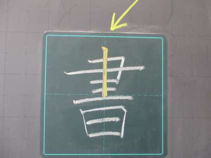ではつぎのもんだいです。しゃしんの「書」というかん字のきいろのぶぶんは、なんかく目に書くでしょうか?