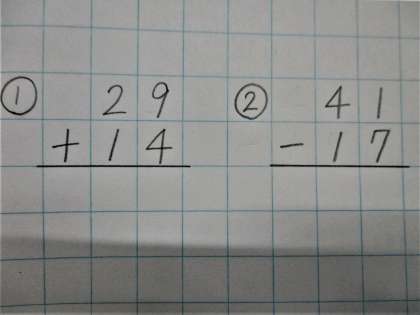 さて今日のもんだいはさんすうのひっさんです。らいしゅうの分さんとう校でもふくしゅうするので、みんなでいっしょにマスターしましょうね。