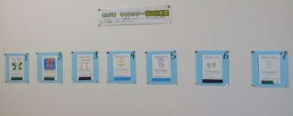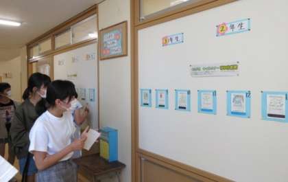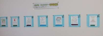 臨時休業中にみんなが考えた「くらがきキャラクター」。たくさんの応募作品を1週間掲示した後、クラスごとに話し合い、代表作品を2点選びました。全14作品の中から、全校児童と教職員の投票が始まりました。さて、全校児童の中からどの作品が選ばれるでしょうか。