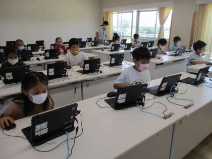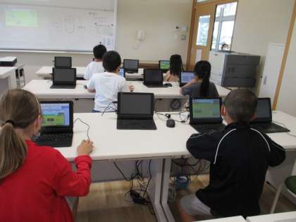 最後には、習ったことを生かしてできる簡単なゲームに取り組み、子供たちはとても楽しみながら、コンピュータの使い方を学習することができました。