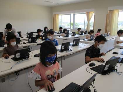 子供たちは、コンピュータを使って学習することは初めてだったので、基本であるマウスの使い方から一つ一つ勉強しました。