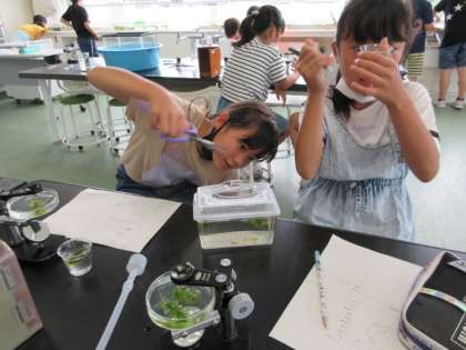 雲の様子から明日の天気を予想したり、メダカの卵の観察をしたり、各自が真剣に楽しみながら学習しています。