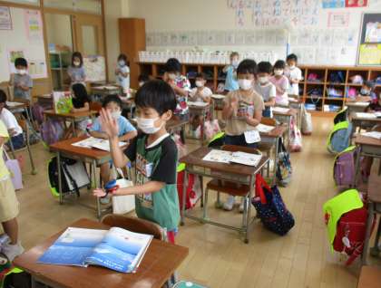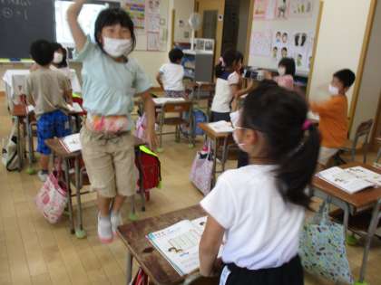 音楽科では、「リズムをかんじて」の学習をしています。じゃんけんのリズムを「たんたんたんうん」のリズムで手拍子をしたり、カスタネットでリズム打ちをしたりしました。みんな楽しそうに取り組んでいました。