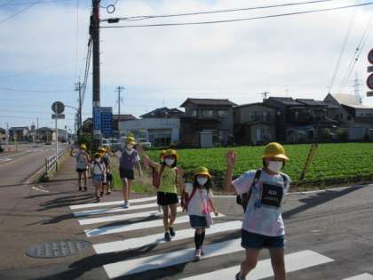 「おはようございます」というさわやかな挨拶をする子供たち。手をあげて渡る子も増えてきています。