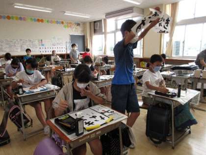 平仮名は難しいのですが、さすが6年生。教頭先生に見ていただいています。