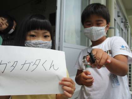 そして生き物係が、クワガタに名前をつけようと、みんなに名前アンケートをとったところ、クワガタの方が「ガタガタくん」とヒラタクワガタの方が「ひらたくん」に決まりました。