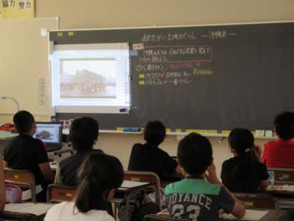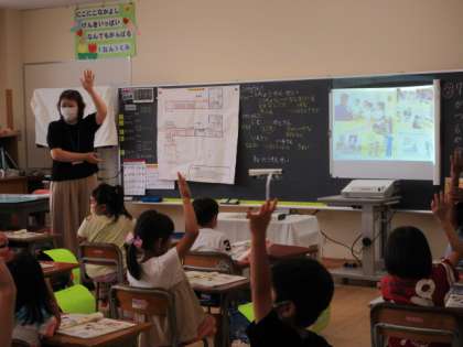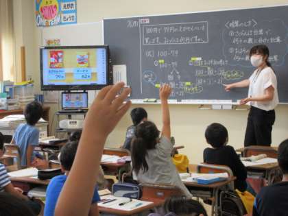雨の中、がんばって登校してきた子供たち。自分の思ったことを発表したり、考えをノートに書いたり、動画をもとに比べてみたりしながら学習を進めています。