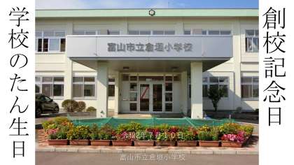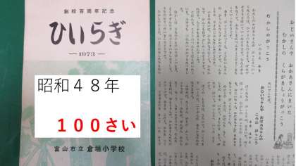 今日は、倉垣小学校のたんじょう日です。147年目を迎えました。校内放送で、学校の歴史や周年記念誌に書かれた当時の出来事をなどを紹介しました。記念誌は、図書室にコーナーを設けて展示してあります。ぜひ、読んでください。