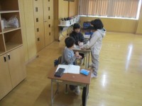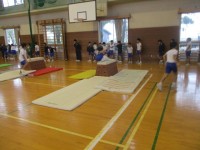 授業のはじめに、しっかりストレッチをしています。柔軟性に富んだ人を発見。