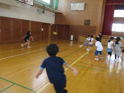 みんな久しぶりにドッチボールをしたので、どの子も楽しそうにボールを投げたり、逃げたりしていました。