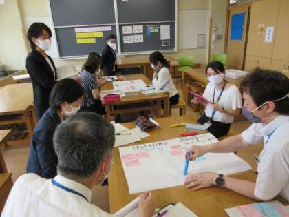 子供たちが自分の考えをしっかりともち、安心して表現することができるように、関わり合いながら学ぶ授業づくりをするために、みんなで考えを出し合っています。
