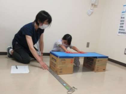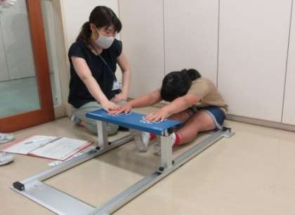 らんRUNタイムを活用して、長座体前屈の測定をしています。