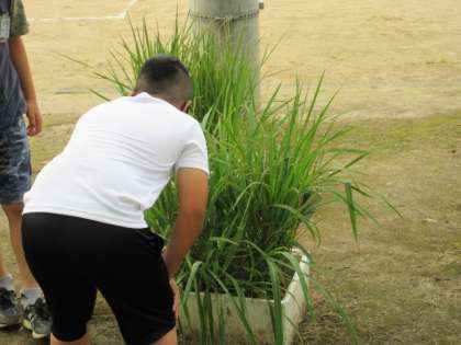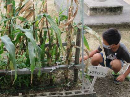 稲の様子を見たり、野菜の水やりをして草をむしったりする姿が見られます。