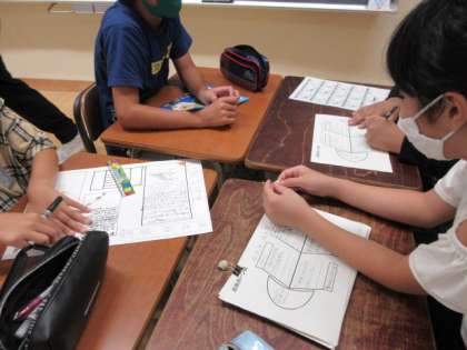 グループで取り組んでいる新聞の仕上げ中。環境問題に向けて一人一人がチャレンジすることも決定したようです。