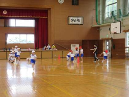 昨日は、富山市が日本中で1番気温が高く、暑くてグラウンドで走ることはできませんでした。今日は、雨が降り、体育館も涼しくなったので、リレーの学習をしています。声援を受けて一生懸命バトンをつないで走っています。