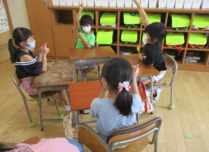 2学期がスタートしました。テレビ始業式をした後、夏休みの思い出をみんなで聴き合いました。家で水遊びをしたことや海に出かけたことなどをうれしそうに話していました。席替えをした後には、新しいグループでも楽しかったことやがんばったことを聴き合いました。久しぶりに友達と会い、みんな楽しそうに話していました。