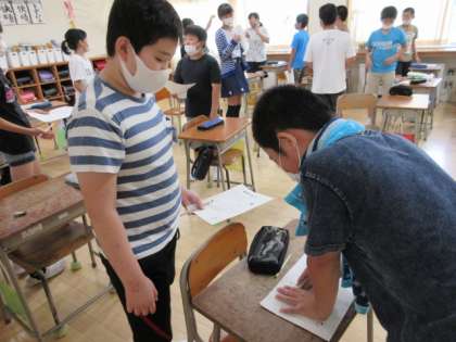 夏休みの思い出ビンゴ〜友達の過ごし方を聞き合っています。