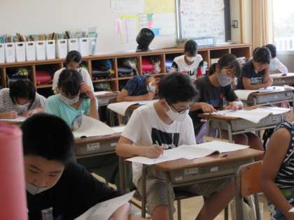 4月に行われる予定だった調査に、6年生が挑戦しています。真剣に問題を読み、取り組んでいます。