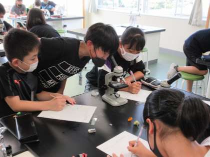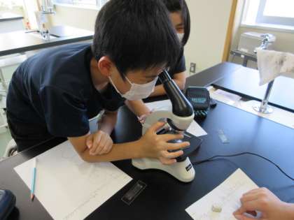 4種類の花粉を顕微鏡で観察中。どんな特徴、共通点や相違点があるのでしょうか。