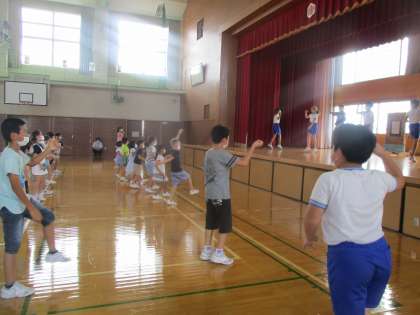 今日は、青団がにこにこタイムにダンスの練習をしました。どの子も一生懸命に振りを覚えようとがんばっていました。