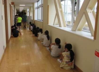 検査会場では、静かに行動することができていました。廊下で待つときは、マスクをして間隔を空けています。1年生も上手に待てるようになりました。
