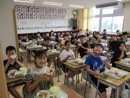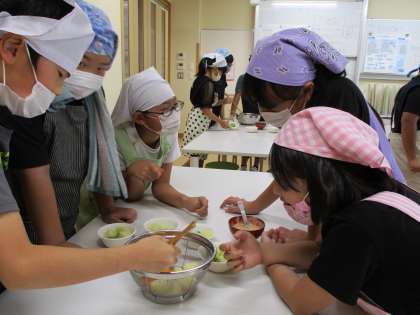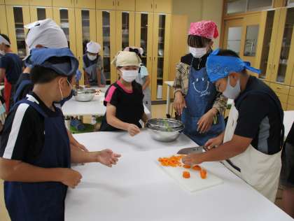 でき上がったサラダは給食時に一緒に食べました。サラダを食べる子供たちの表情はとても幸せそうでした。食べた後に、「とってもおいしかった!」「お母さんの苦労が分かった」など、様々な感想が聞かれました。