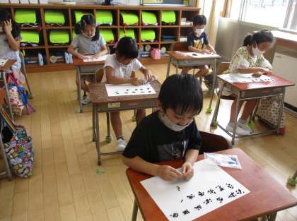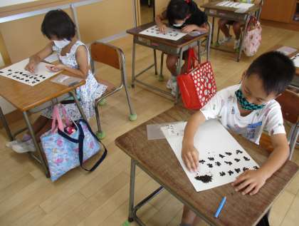 種取りしたアサガオの種を数えました。10ずつのまとまりにして、10がいくつあるかを数えました。140個、150個と、数えたことのない大きな数を数えていました。もう少し、種取りを続けます。