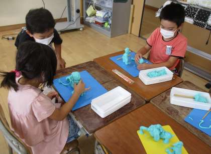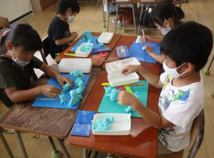 「どうぶつといっしょに」の学習で、グループを作って粘土で動物たちをつくりました。グループで相談しながら、楽しそうにつくっていました。鑑賞タイムには、友達に質問したり感想を伝えたりしています。