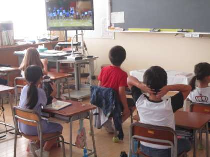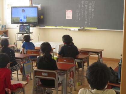 ひいらぎタイムにハッピー集会をテレビ放送で行いました。内容は、ジェスチャーゲーム・6年生の総合的な学習の発表・5年生の音楽の発表でした。テレビ放送でしたが、子供たちは真剣に画面を見て、楽しい時間を過ごすことができました。