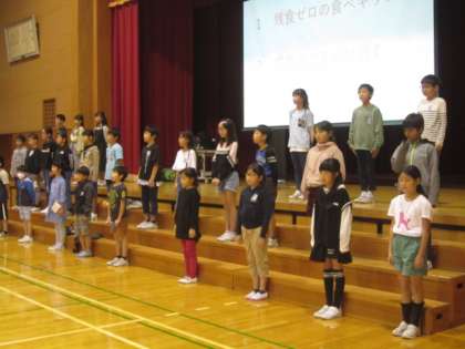 4年生「地球の今と、これから 〜自分たちにできることを考えよう〜」は、環境問題の現状や対策について自分や家族で取り組んでいることを発表しました。