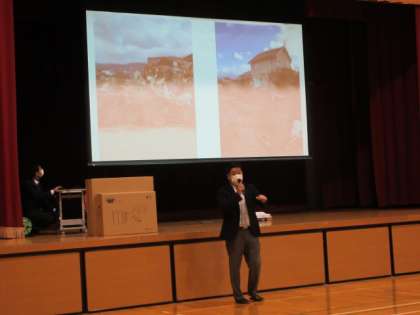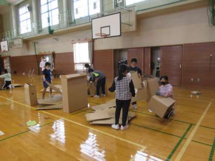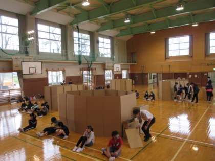 サクラパックス株式会社さんのご協力により、段ボールベッドとパーティションづくりを行いました。実際に災害ボランティアに出向かれた方のお話を聞き、避難所の大切さとその様子がよく分かりました。自分たちにできることを教えていただき、みんなで挑戦しました。