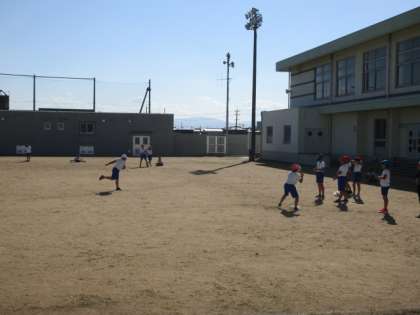 グラウンドでは、ベースボール型ゲームを楽しみながら元気よく活動しています。