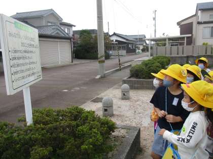 生活科「公園に行こう」の学習で布目地区の3つの公園を探検しました。どの公園にも使い方を説明する看板があり、公共の施設の使い方を学ぶことができました。それぞれの公園で楽しく遊び、3つの公園の特徴を見つけました。歩きながらキンモクセイを見つけたり、秋らしい落ち葉を見つけることもできました。「すごく楽しかったよ」とみんなうれしそうに話していました。