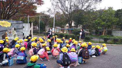 ファミリーパークで、グループ活動をしています。チェックポイントを回り、クイズに挑戦しています。