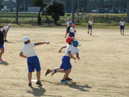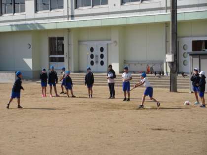 朝はとても寒かったのですが、どんどん気温も上がり、さわやかな青空が広がっています。外では、打って、走って、投げて、ベースボール型の活動を楽しみながら、思いっきり体を動かしています。