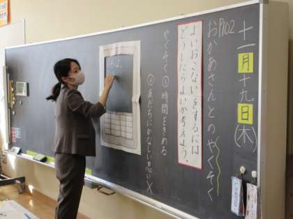 道徳「おかあさんとのやくそく」 よい行いについて考えています。