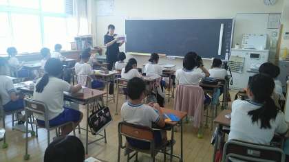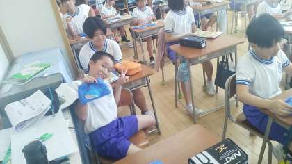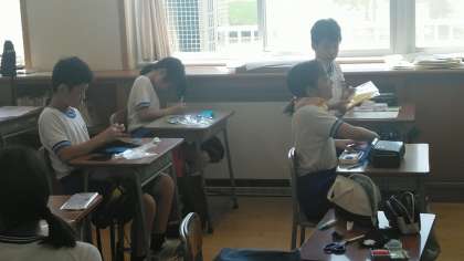 5年生の4時間目は、家庭科の学習でした。縫って小物をつくる?学習らしく、今日は、仕上げみたいでした。