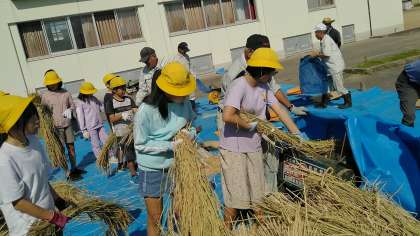 10月1日(火) 5年生 脱穀・もみすり作業2