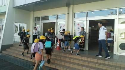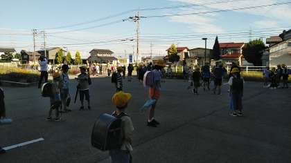 今朝の児童玄関の様子です。今日も清々しい秋晴れの朝です。子供たちは、元気に挨拶してくれました。